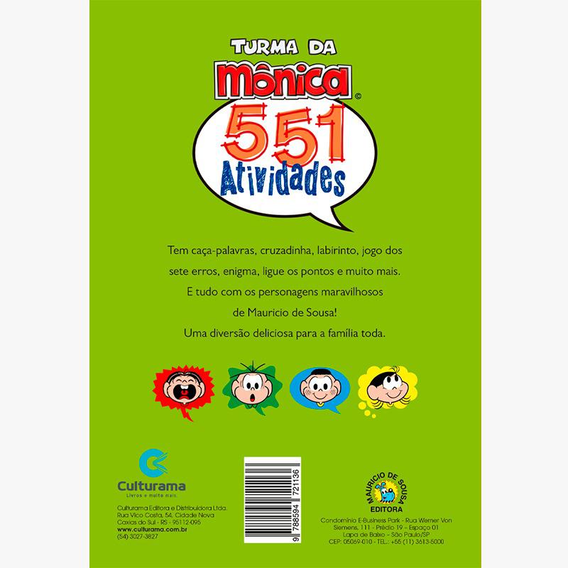 O Livro de Atividades - Turma da Mônica - 551 Atividades - Culturama vai entreter e render novas histórias com as crianças.