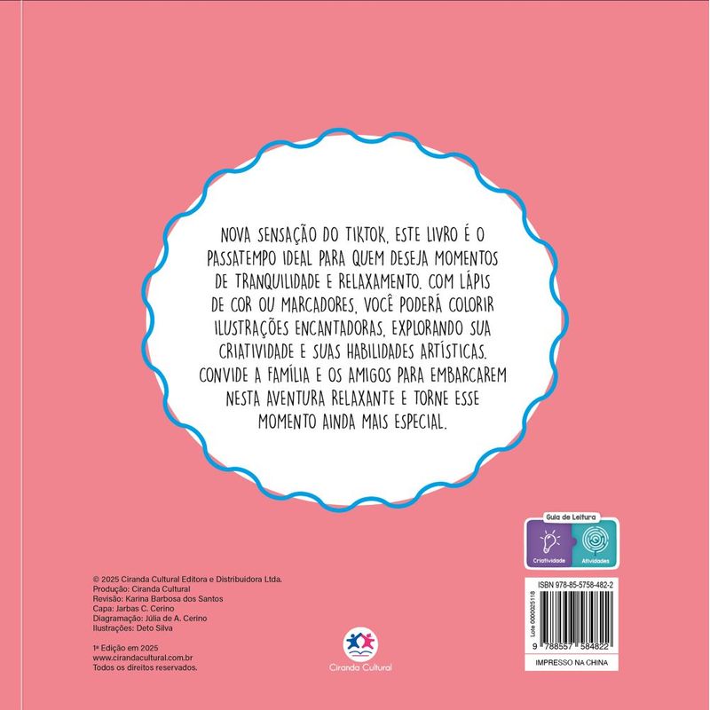 CUTE WORLD é um livro de colorir que convida você a explorar um mundo de fofura e imaginação. Inspirado na série Bobbie Goods sucesso no TikTok, este livro apresenta ilustrações que despertam a criatividade e a alegria. Se você é um adulto em busca de um momento de relaxamento e bem-estar, CUTE WORLD é o companheiro ideal. Com seus desenhos detalhados e temas tranquilos, este livro ajuda a aliviar o estresse e a ansiedade, proporcionando uma sensação de calma e tranquilidade. Para as crianças, CUTE WORLD é um portal para um mundo de diversão e aprendizado. Com seus personagens cativantes e cenários imaginativos, este livro estimula a criatividade, a coordenação motora e a imaginação. As crianças podem usar canetinha, lápis de cor, giz de cera ou aquarela para colorir os desenhos e criar suas próprias histórias. Baseado na série Bobbie Goods, um sucesso do TikTok, CUTE WORLD é um livro para todas as idades. Adultos e crianças podem se juntar para colorir e compartilhar momentos de alegria e criatividade. Com CUTE WORLD, você pode usar diversos materiais para colorir, como canetinha, lápis de cor, giz de cera e aquarela. Experimente diferentes combinações de cores e técnicas para criar obras de arte únicas e personalizadas. CUTE WORLD é o presente ideal para pessoas de todas as idades. Seja para um adulto que precisa relaxar ou para uma criança que ama colorir, este livro é uma ótima opção para expressar sua criatividade e se divertir. Informações do produto: ISBN: 978-85-5758-482-2 Quantidade de Páginas: 96 Tamanho do Livro: 24 x 24 cm Tipo de encadernação: Brochura Gramatura do papel: 120g/m² Ilustrador: Deto Silva