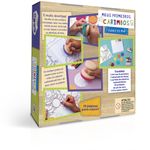 Ajude a deixar o fundo do mar mais colorido. Personalize as imagens com o kit de gizes coloridos e carimbo para deixar as cenas ainda mais divertidas.