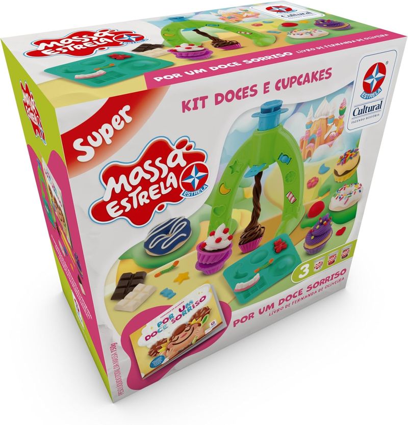 O livro Por um doce sorriso conta a história de uma menina chamada Dora que transformou as vidas de seus vizinhos com seus deliciosos doces, sensibilidade, coragem e gentilezas! O livro acompanha 1 extrusora, 2 moldes de cupcake, 1 bandeja com molde de doces, faquinha, rolinho e 3 potes de Massa Estrela de 50g. :