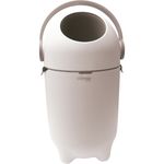 A tampa possui mecanismo giratório que permite descartar fraldas com apenas uma mão. Basta girar, depositar a fralda e pronto: o sistema se fecha de forma automática, impedindo que o odor se espalhe.