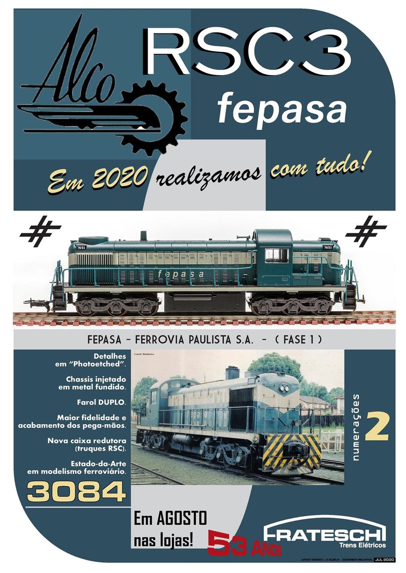A Frateschi aos seus 53 anos de história traz como lançamento as Locomotivas ALCO RSC-3 de 3 eixos em escala HO. Fabricada pela American Locomotive Company (ALCO), possuem propulsão Diesel-Elétrica e foram compradas em 1951 pela Companhia Paulista de Estradas de Ferro (CPEF) com o objetivo de substituição das locomotivas com tração elétrica. Posteriormente em posse da FEPASA as RSC-3 permaneceram em operação até 1981 sendo preservada apenas uma única unidade da qual serviu as vias da Ciminas em 1983 e a partir de 2012 a Supervia.