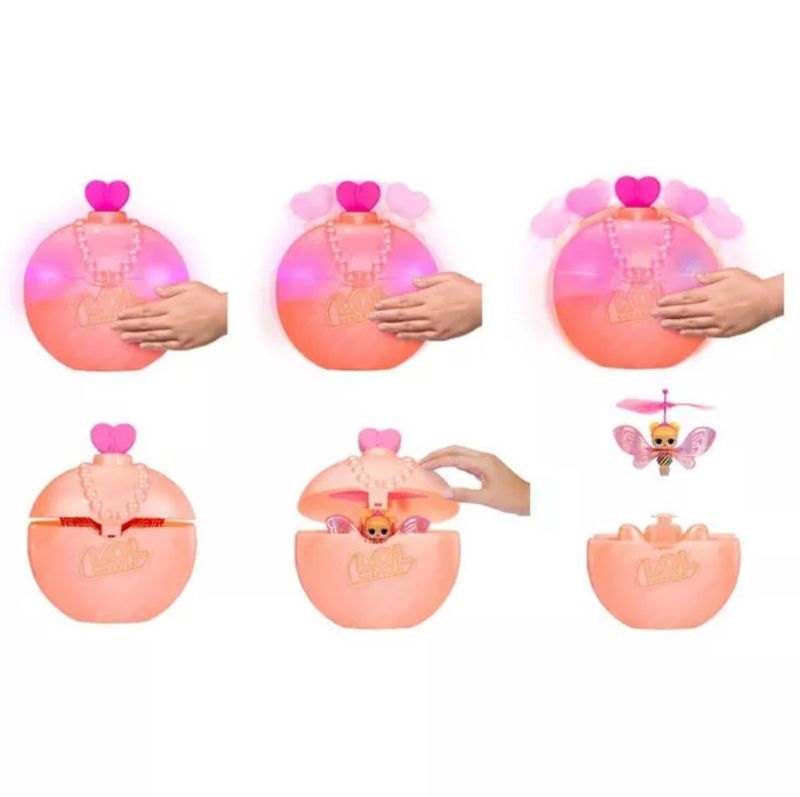 Uma garrafa misteriosa. Flashes de luz. Isso treme. Isso arrasa. Ele ganha vida! Conheça os Magic Flyers que voam magicamente e fazem uma cena! Apresentando LOL Surprise Magic Flyers! Cada boneca LOL Surprise Magic Flyer vem em uma garrafa plástica exclusiva que ganha vida quando você toca ou esfrega. Toque na garrafa uma vez e ela treme, toque duas vezes e ela se ilumina em um arco-íris incrível, toque três vezes e a garrafa se abre magicamente, depois puxe a tampa para trás e seu Tot voador mágico voa para o ar. Enquanto seu Magic Flyer estiver no ar você pode guiá-lo com a mão, evitando que ele toque o chão. É uma experiência de unboxing como nunca antes! CoCada boneca vem com um estilo moderno, com asas exclusivas e a capacidade de voar! Cada Magic Flyer vem com baterias e um cabo USB para recarregar sua garrafa e seu Tot voador.