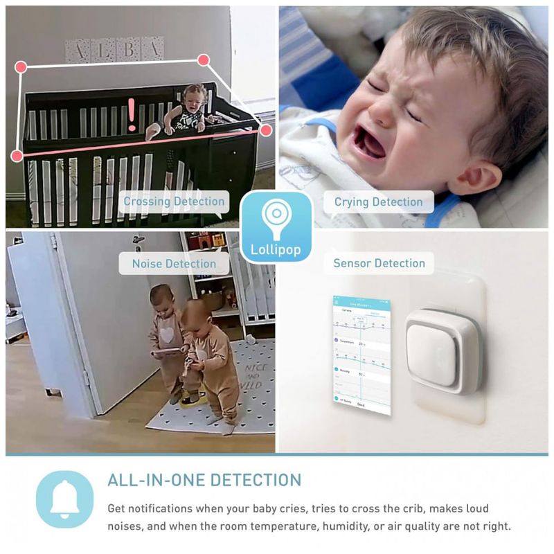DETECÇÃO DE CRUZAMENTO E CHOROS Preocupado com o bebê saindo do berço ou chorando quando você não está perto dele Receba notificações quando seu bebê chorar, sair do berço ou fazer barulho