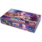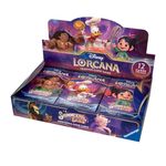 A Booster Box contém 24 pacotes de booster, e cada um deles traz 12 cartas aleatórias do conjunto Disney Lorcana TCG: Shimmering Skies.