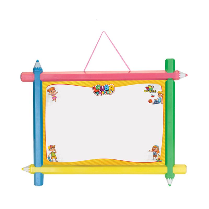 Lousa Criativa 2 Em 1 Quadro Negro - Art Brink Informações do Produto: Lousa dupla para usar com caneta para quadro ou giz de quadro negro com corda para pendurar. Ela estimula a criatividade, visão e coordenação motora das crianças. Itens inclusos: 1 lousa criativa dupla face, 1 apagador, 1 pincel, 2 gizes de quadro negro. Dimensões aproximadas do produto: AxL 42cm x 55cm. Recomendado: Não recomendado para crianças menores de 03 anos. Alimentação: Não Necessita. Material composição: Plástico, metal, papel, giz de gipsita sulfato de cálcio, oxigênio enxofre. Certificação: Registro compulsório inmetro 006706/2019. Ocp 0098. Garantia do Fabricante: 03 meses contra defeitos de fabricação. Aviso: Todas as informações divulgadas são de responsabilidade exclusiva do fabricante/fornecedor. As cores dos tecidos ou dos produtos podem variar entre as imagens mostradas acima ou fotos da embalagem. Imagens meramente ilustrativas.