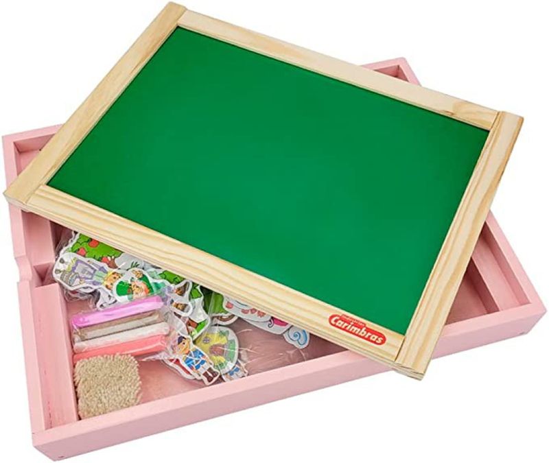 A Lousa dupla face acompla na caixa de Madeira para sustentar na brincadeira.