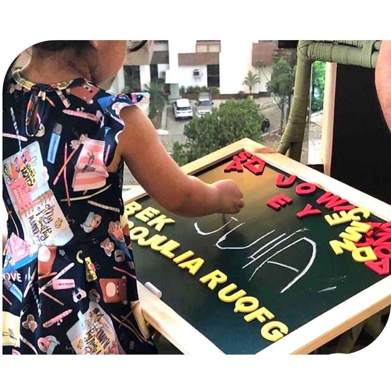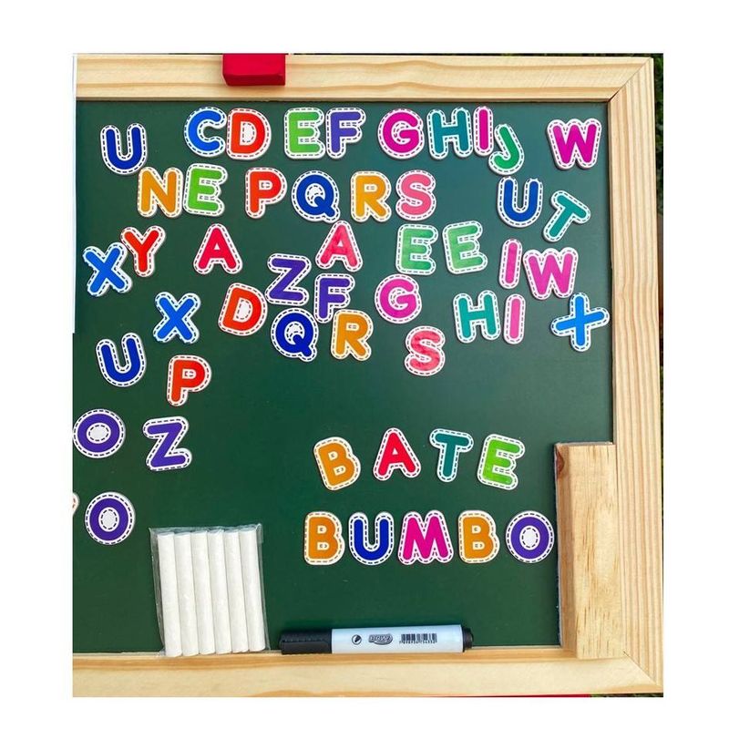 LOUSA MAGNÉTICA DUPLA FACE + ALFABETO ÍMÃ + GIZ E APAGADOR