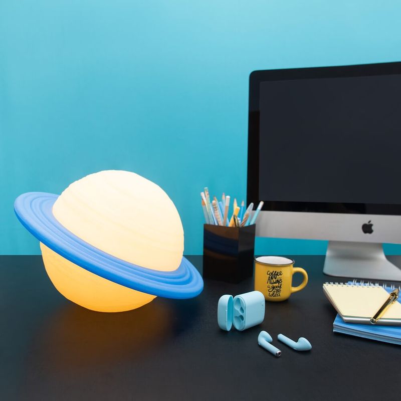 Amantes do espaço de todas as idades vão se apaixonar por essa luminária lindaLuminária de mesa no formato do planeta Saturno.Produção nacional em polietileno. Bivolt (110/220V), utiliza lâmpad LED ou fluorescente compacta de até 15W (Lâmpada não inclusa.) Cabo 1,8 m com interruptor de mão. ESPECIFICAÇÕES:Material: Polietileno e componentes elétricosDimensões e peso: 21,5x30x31cm (altura x largura x profundidade) e 650gDimensões do cabo: 1,8mTensão: Bivolt (110/220V)Utiliza lâmpada LED ou fluorescente compacta até 15W (lâmpada não inclusa). Para troca de lâmpada você precisará de uma chave philips pequena.