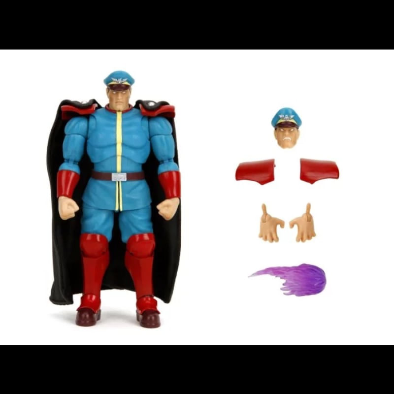 M. Bison Marca do produto: Jada. Coleção: Ultra Street Fighter II - The Final Challengers. Prepare-se para o confronto final em um mundo onde a luta de rua é o evento principal! Revisite o mundo dos seus personagens favoritos do videogame Ultra Street Fighter II, agora como figuras de ação em escala 1:12 da Jada Toys. O chefão está aqui, e ele só tem uma coisa em mente... dominar o mundo! A figura de ação do Ultra Street Fighter II M. Bison vem equipada com mãos alternativas, cabeça e um acessório de fogo roxo. Esta figura de 15 cm de altura vem em uma embalagem estilo arcade com recursos inspirados no jogo. Você está pronto para unir forças com o mal? Para maiores de 14 anos. Licenciado pela Capcom.