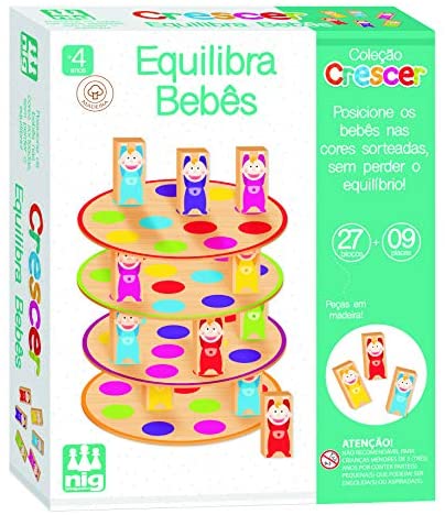 Caixa de atividades para a criança montar a torre mais alta, equilibrando os bebês nas cores sorteadas. Não vale deixar cair