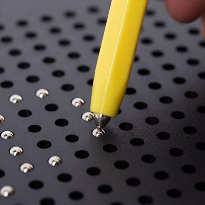 Deixe seus filhos soltarem sua criatividade movendo a caneta magnética pela lousa, fazendo desehos, escrevendo e etc.. Para desfazer, basta usar o lado da caneta para empurrar as bolinhas de volta para baixo.