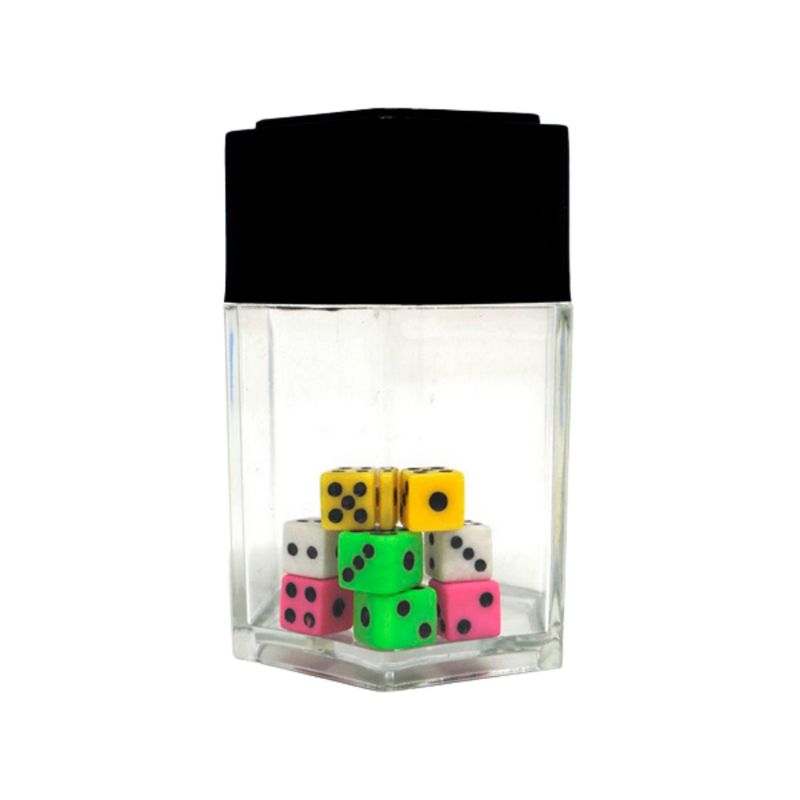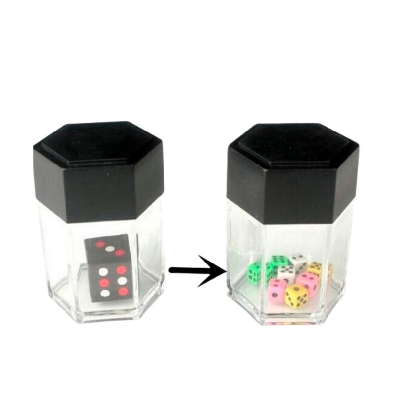 Magica Dados Diminuentes - Ifcat Informações do Produto: O mágico pega um potinho com um dado normal dentro e, após chacoalhar, o dado se transforma em vários mini dadinhos.