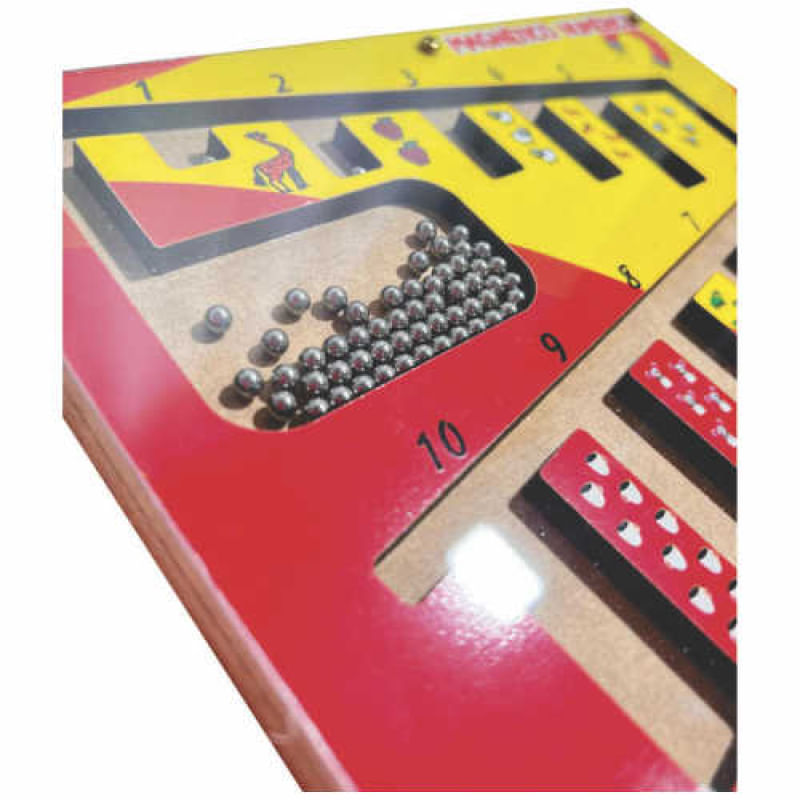 Contém: 01 tabuleiro medido 240 x 165 x 15 mm, com esferas e cursor para movimentar as peças.