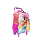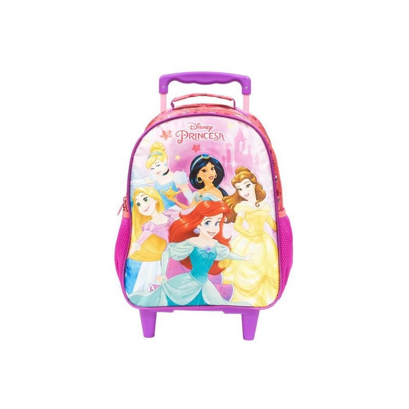 Personagens fortes, determinadas, cheias de coragem e gentileza, Mala com Rodas 16 Princesas R2 - 11090 - Em tamanho 16", é produzida em poliéster resistente e estampado. Painel frontal Cetim vincado - Compartimento principal amplo, 2 bolsos laterais em mesh com elástico. Zíper com puxadores personalizados, Carrinho em metal com travas.