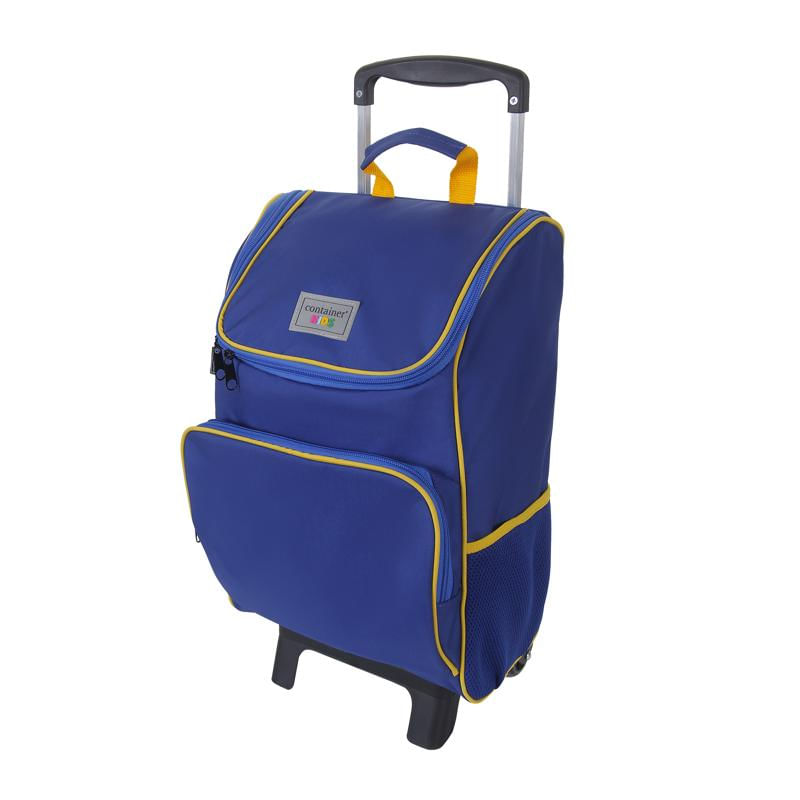 Mala escolar Infantil G c/rodinhas - Azul médio e amarelo