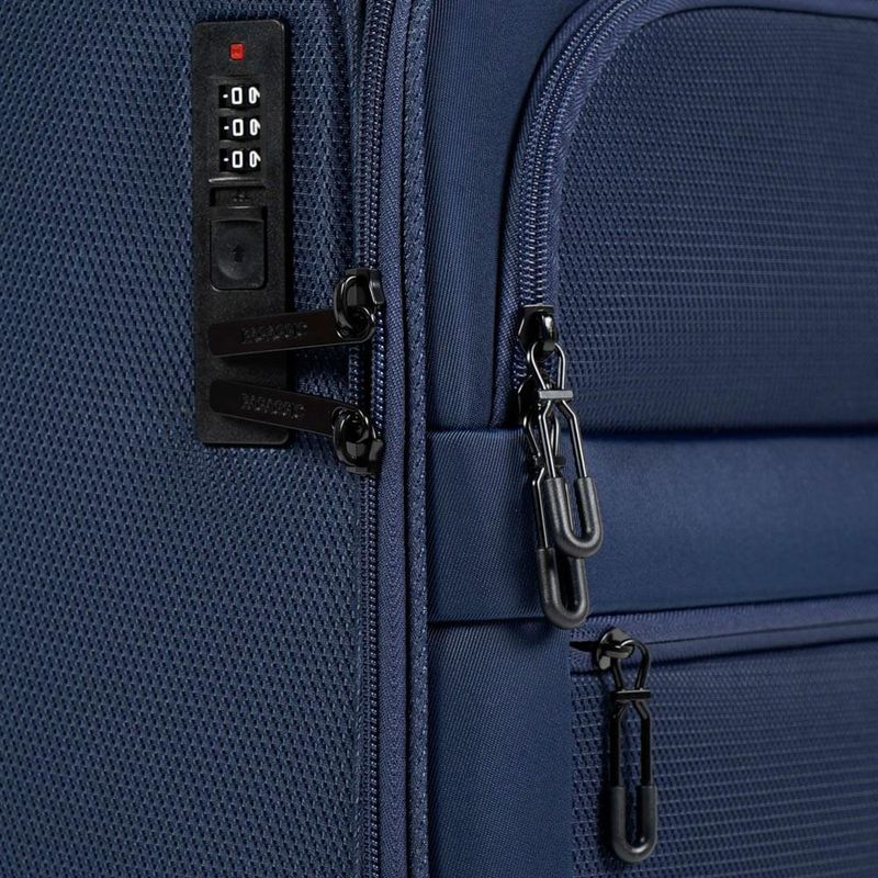 Cadeado com Senha: Cadeado com senha embutido O cadeado com senha vem embutido na mala. Nele, você cadastra uma senha numérica para prender os fechos e viajar com mais segurança.