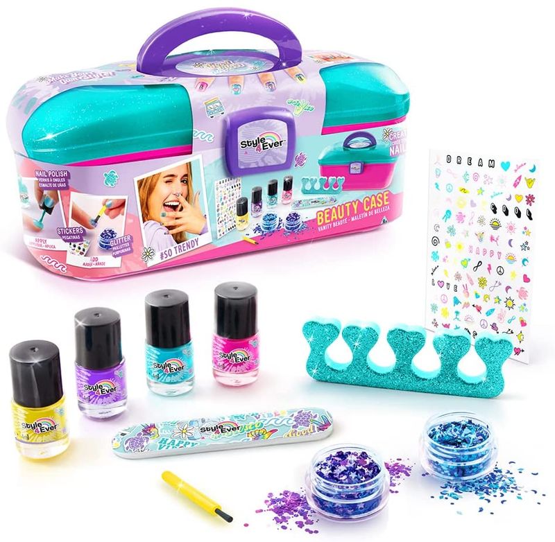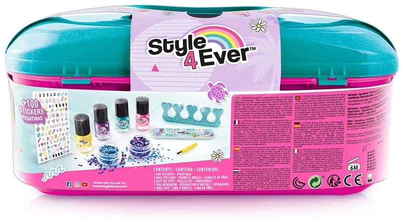 Este conjunto de esmaltes vem com ferramentas para criar divertidos designs de unha. Escolha entre os potes de glitter de cores variadas e surpreenda suas amigas com uma manicure brilhante e colorida!