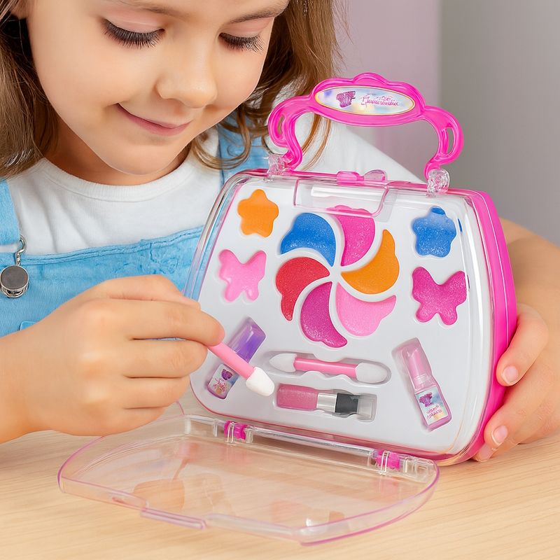 A diversão está garantida com a Maletinha de Maquiagem Infantil Pink Club! Perfeita para meninas que adoram se maquiar como a mamãe. O kit vem com 10 gloss, 2 batons e 2 aplicadores em uma maletinha charmosa que abre e fecha com facilidade. Produzida com materiais atóxicos e seguros, estimula a criatividade, coordenação motora e imaginação das crianças. Ideal para presentes, lembrancinhas de festas e brincadeiras entre amigas.