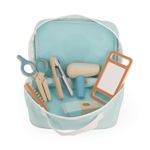 Pronto para um novo corte de cabelo? Com este conjunto completo de cabeleireiro, o seu filho vai fazer maravilhas pelo seu estilo! Na sua pequena mala de tecido transportável, ele terá tudo o que precisa para praticar os seus conhecimentos de cabeleireiro ou barbeiro: um pente, um secador de cabelo, uma máquina de cortar, uma tesoura, um alisador e o espelho indispensável para partilhar o seu trabalho com o cliente do dia! Todos estes acessórios são fabricados em madeira FSC (madeira proveniente de florestas geridas de forma sustentável) e exibem a sua cor natural. Também somos loucos pelo design meticuloso e pelas cores deste pequeno kit de cabeleireiro perfeito, em tons de azul/laranja (tinta à base de água) para combinar com o kit azul-celeste. Todos os acessórios cabem perfeitamente no estojo, que se fecha com um fecho de correr. Vamos passar horas a fio a sonhar com os penteados mais loucos e a partilhá-los com os amigos e a família! Para crianças a partir dos 3 anos. Dimensões 21,6 x 9,5 x 16,5 cm Material Madeira (bétula), tecido Tipo de embalagem Estojo com fecho de correr e pegas em tecido para facilitar o transporte