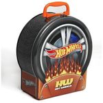 Maleta temática em formato de roda metálica, ideal para fãs de Hot WheelsPossui 29 compartimentos internos para carrinhos escala 1:64 (não inclusos)Design moderno e resistente, com trava de segurança e alça para transporteProduzida em plástico e metal durávelIndicado para crianças a partir de 5 anosProduto certificado pelo Inmetro (Registro 006715/2022)\n\nIdade recomendada:5-7 anos;Composição/Material:Metal;Funciona com pilhas:Não;Brinquedo com luz:Não;Brinquedo com som:Não;Dimensões:29,7x10x22 cm;Peso:0,65 kg;Código de Barras:7908489405992;Garantia do Fornecedor:3 Meses contra defeito de fabricação;