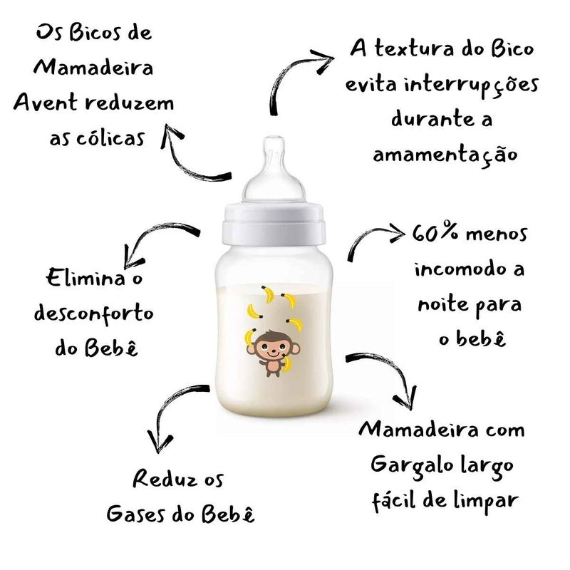 Mamadeira 260mL Clássica Avent Philips Phillips Bico Número 2 Anti Cólica Anticólica Decorada Vários Modelos Original Co