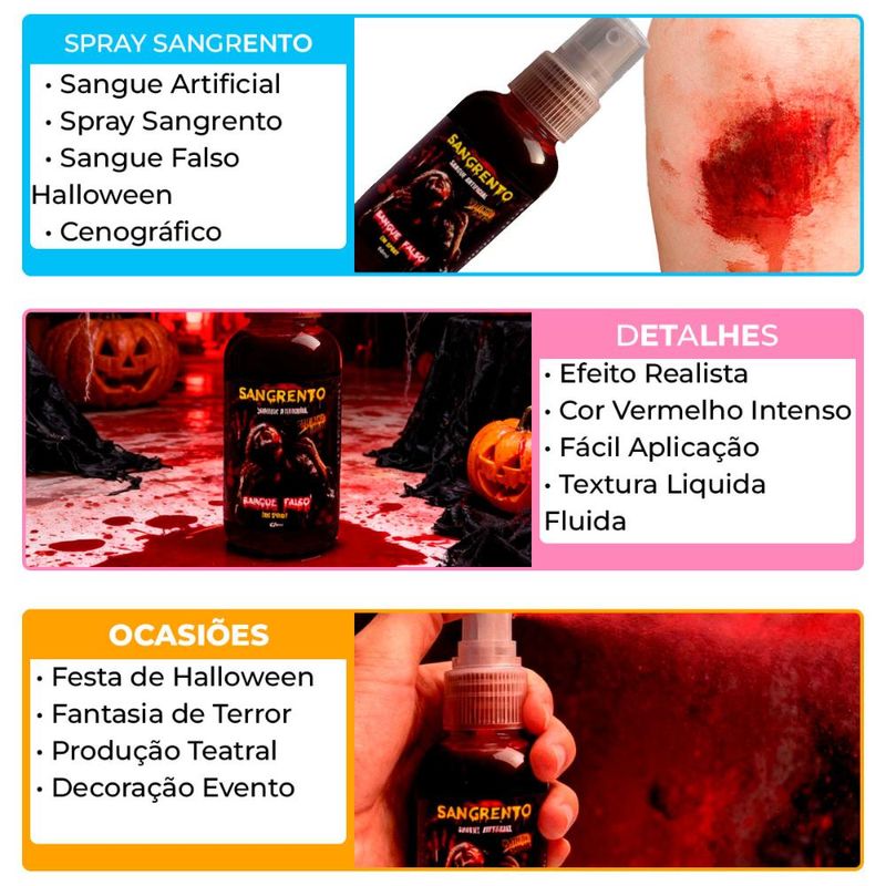 Transforme qualquer produção em uma cena de terror realista com o Spray de Sangue Falso Sangrento. Prático e fácil de aplicar, ele cria o efeito perfeito de respingos, manchas e ferimentos cenográficos. Seja para maquiagem artística, fantasias de Halloween ou efeitos especiais, o resultado é impactante e assustador. O frasco em spray garante aplicação rápida, uniforme e sem sujeira, ideal para simular cortes, machucados e até mesmo respingos de horror em roupas, objetos ou cenários. Uma escolha indispensável para quem busca realismo em festas temáticas, teatro, cinema, cosplay ou produções fotográficas. Destaques do produto: Spray de sangue falso com 60ml Efeito realista de sangue fresco e respingado Fácil aplicação em pele, roupas e objetos Ideal para Halloween, teatro, cosplay e efeitos especiais Secagem rápida e uso prático em spray