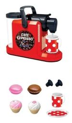 A máquina de café expresso acompanha cápsulas, colheres, xícaras, pires, docinhos.