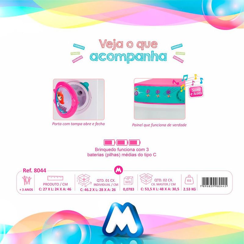 Deixe a brincadeira da sua filha muito mais divertida e real, utilizando a Máquina de Lavar Infantil Magic Toys 8044. Produzida com materiais de alta qualidade e durabilidade que conferem beleza ao design e resistência, garantindo brincadeiras por muito mais tempo.