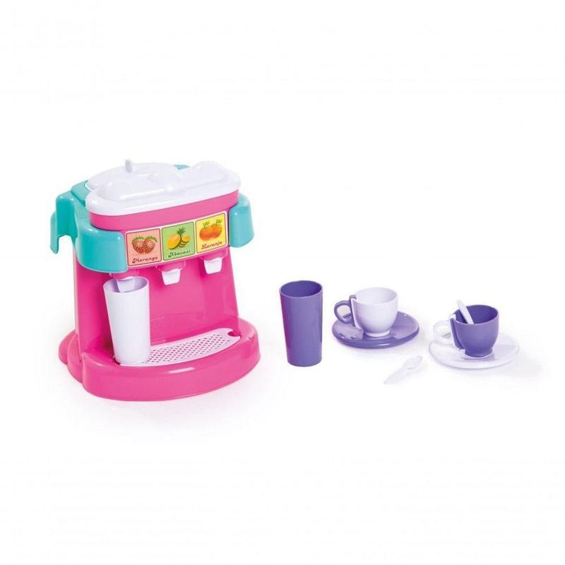 Cafézinho para a visita! Na Máquina de Café e Suco é possível brincar com os líquidos de verdade. De um lado, você pode colocar café, chá, chocolate ou capuchino. Do outro até três sabores de suco! Os pequenos (as) chefs irão adorar! Traga os amigos para brincar e comece um grande negócio. Com vários acessórios, como xícaras e copinhos, super fácil de limpar, a garotada vai adorar esta novidade! Adaptação social, interação, Conhecimento Geral, Expressão e comunicação, Aprendizado pela imitação, Imaginação e criatividade agregadas em um só brinquedo!