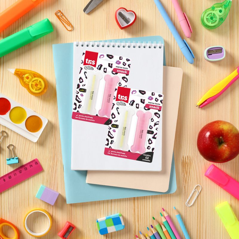 Quanto mais fofinho, melhor! Produtos de bichinhos são eternamente populares e estão em toda parte. A coleção Pets promete ser a nova sensação para os amantes de animais. O marca-texto Snack tem um formato adorável de ossinho e uma ponta chanfrada, permitindo a criação de traços finos e grossos. Vem em uma cartela com as cores rosa e amarelo.