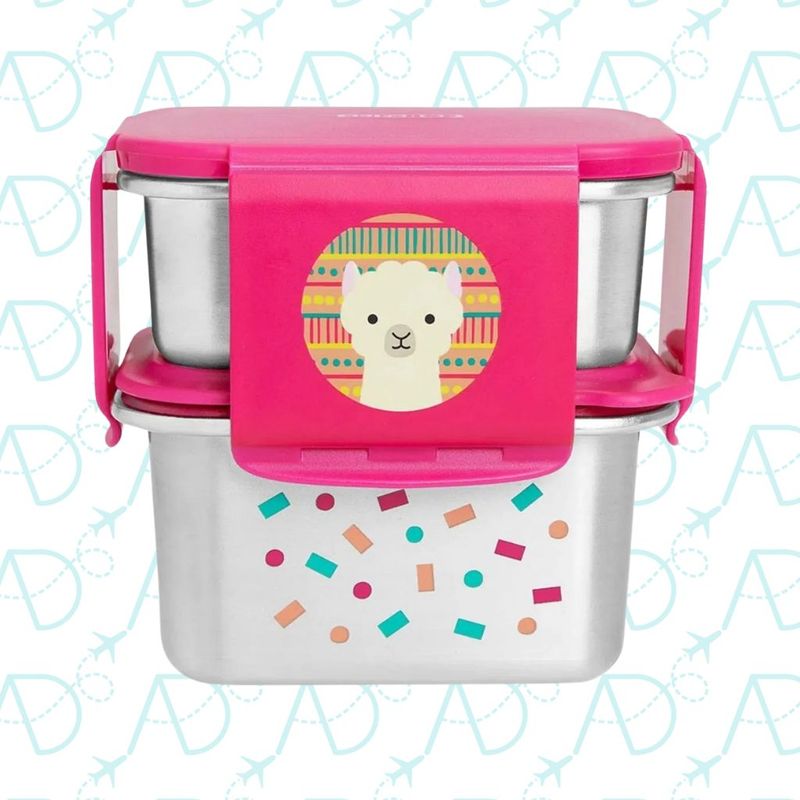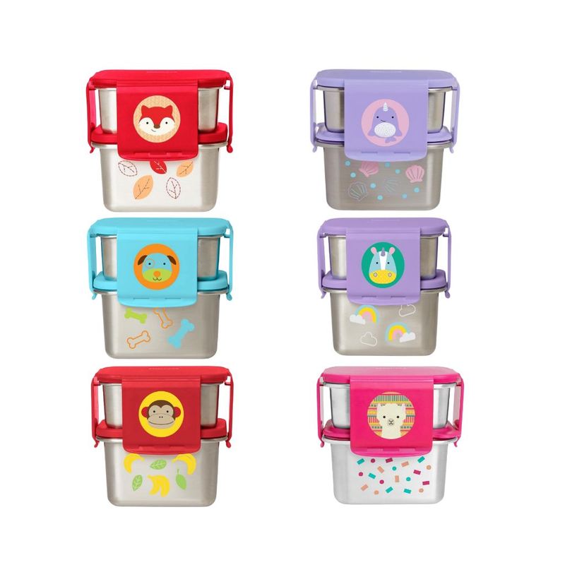 Embale o lanche, lanches e muito mais do seu filho neste prático kit de aço inoxidável. Projetado para empilhar e travar juntos, o conjunto inclui um contêiner grande e um pequeno com tampas seguras para conveniência em trânsito. Escolha seu personagem ZOO® favorito e combine-o com sua mochila, merendeira e outros itens essenciais para a hora das refeições da coleção.