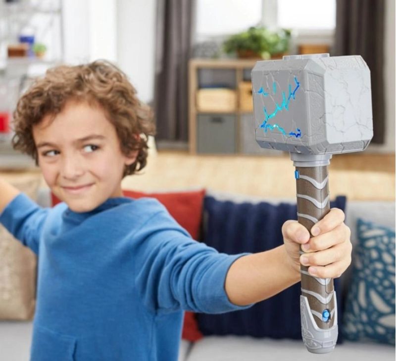Martelo Eletronico - Marvel Thor Amor e Trovao - Mjolnir - Hasbro: O martelo encantado de Thor esta de volta, agora controlado por um novo heroi digno de seu poder! Imagine entrar em batalha com o Mjolnir para proteger Nova Asgard! Viva a emocao e aventuras do Universo Marvel como Thor ou Mighty Thor com o Martelo Eletronico Mjolnir FX inspirado no filme Thor: Amor e Trovao. DETALHES: • Com 2 modos de heroi • Brinquedo de RPG com design e detalhes inspirados no filme • As criancas podem provar que sao dignas de empunhar o martelo Mjolnir ao deslizar o polegar sobre o sensor no cabo do martelo eletronico para desbloquear luzes e efeitos sonoros extras INFORMACOES: • Produto: Martelo Eletronico FX Mjolnir • Marca: Hasbro • Colecao: Marvel Love and Thunder • Tipo: Martelo Eletronico • Categoria: Faz de Conta / Fantasia e Cia • Conteudo: 1 martelo • Recomendacao: para criancas a partir de 05 anos de idade ESPECIFICACOES: • Modelo: Avengers Filme Thor Martelo Eletronico • Referencia: F3359 • Codigo de Barras: 5010993974023 • Embalagem (C x A x L): 43.2 x 25.4 x 8.1 cm • Embalagem (Peso): 0.284 kg • Material / Composicao: Plastico • Licenciamento: Marvel Studios • Registro: 002520/2021 • Certificado: Orgaos Autorizados - OCP´S (Organismos de Certificacao de Produtos) BENEFICIOS DE BRINCAR: • Eleva a autoestima • Estimula o raciocinio • Exercita o imaginario • Desenvolve a criatividade • Desenvolve percepcao visual • Desperta a atencao e curiosidade • Desenvolvimento neuropsicologico • Estimula habilidades motoras basicas • Incentiva a comunicacao e linguagem • Desenvolve aspectos emocionais e afetivos AVISO: • As imagens sao meramente ilustrativas • Os pesos, tamanhos e medidas sao aproximados • As cores e estampas dos produtos podem ter variacoes • As informacoes sao de responsabilidade do fabricante ou fornecedor
