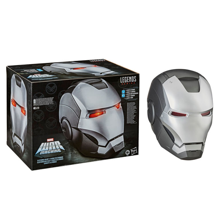 Pré-venda: Lançamento previsto para abril de 2021. Equipado com uma armadura de máquina de guerra, James Rhody Rhodes é uma força de combate imparável! Inspirado no Universo Marvel, este item RPG premium em escala real da Marvel Legends Series 1: 1 é altamente detalhado e apresenta luzes e sons eletrônicos. Além de 2 olhos de LED brilhantes, o capacete possui uma placa frontal magnetizada que pode ser removida e conectada ao topo. Colocar e retirar o painel frontal ativa os olhos iluminados e o efeito sonoro. Com escultura e design premium, este capacete é uma adição impressionante a qualquer coleção da Marvel. O interior do capacete e o painel frontal são detalhados para evocar o design eletrônico, enquanto o exterior apresenta uma atenção notável aos detalhes e um belo acabamento. Colecionadores, fãs e entusiastas da Marvel podem se imaginar vestindo e criar suas próprias aventuras heróicas.