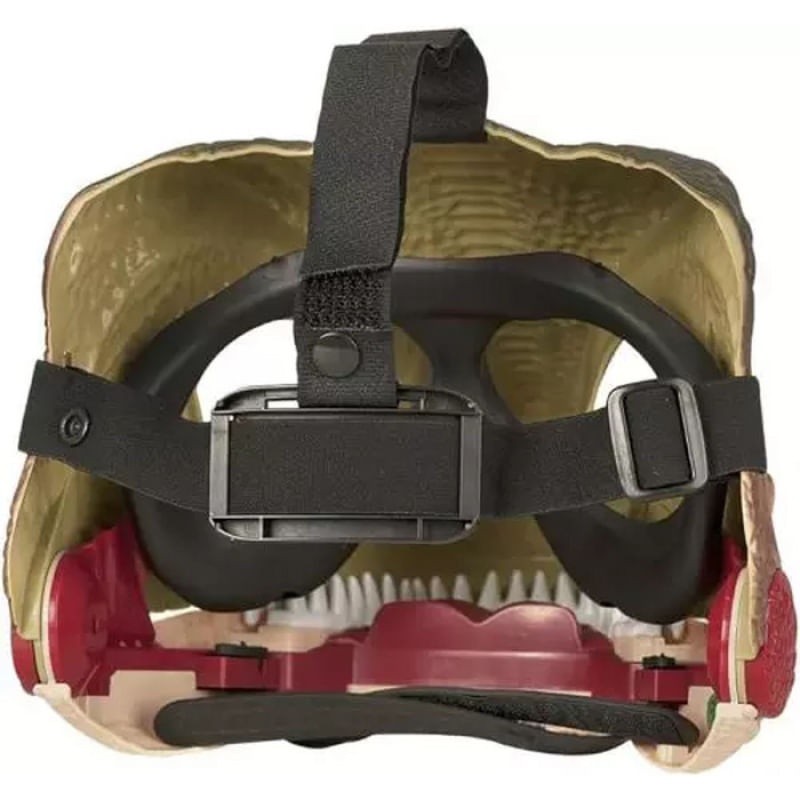 A Máscara Dino Ataque Furioso é irada! Possui cinto e velcro que se ajustam na cabeça, mobilidade da mandíbula, olhos acendem e ainda emite sons de dinossauro ao abrir a boca