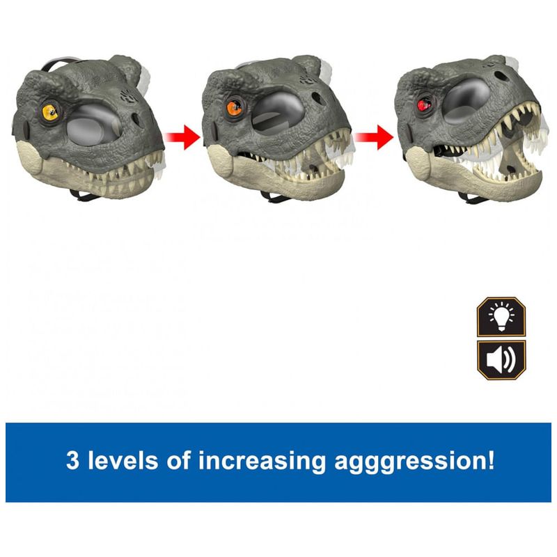 FANTASIASMÁSCARASMáscara T-Rex Rage N Roar Jurassic World Rebirth Mattel Multicolorida com LEDs e efeitos sonoros