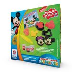 1 livro de 24 páginas, 2 cortadores e 2 carimbos do Mickey e da Minnie, rolinho e 3 potes de 50g de Massa Estrela