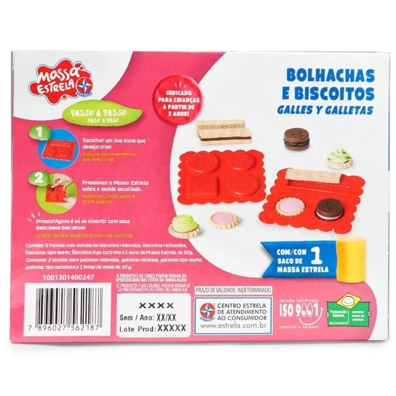 - Conteúdo da Embalagem: 2 formas moldes de bolachas redondas, biscoitos e cookies e um saco de 50 g de Massa Estrela.