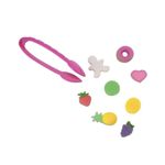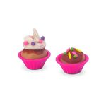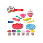 -Incluso:Forminhas cup cake, 1 forminha de frutinhas e 1 forminha de biscoito, seringa modeladora com bico, pegador, faca sem corte e rolinho, 6 potinhos de massinha de 50g cada.Peso líquido total da massa 300g