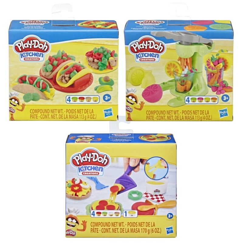 Esses lindos kits de comidinha Play Doh tem tudo que as crianças precisam para brincar de chef de cozinha! Todo dia pode ter um banquete mexicano com o Kit Comidinha Mexicana! Ele vem com uma máquina de tortillas, ralador de queijo e acessórios! Ou, se estiver com sede, ficou fácil preparar uma deliciosa limonada com o kit de Sucos Tropicais! Ele vem com um espremedor de limão, copos e todas as ferramentas necessárias! Ou se preferir pode preparar a sua própria pizza de mentirinha, com os acessórios de pizzaiolo! Kits vendidos separadamente.
