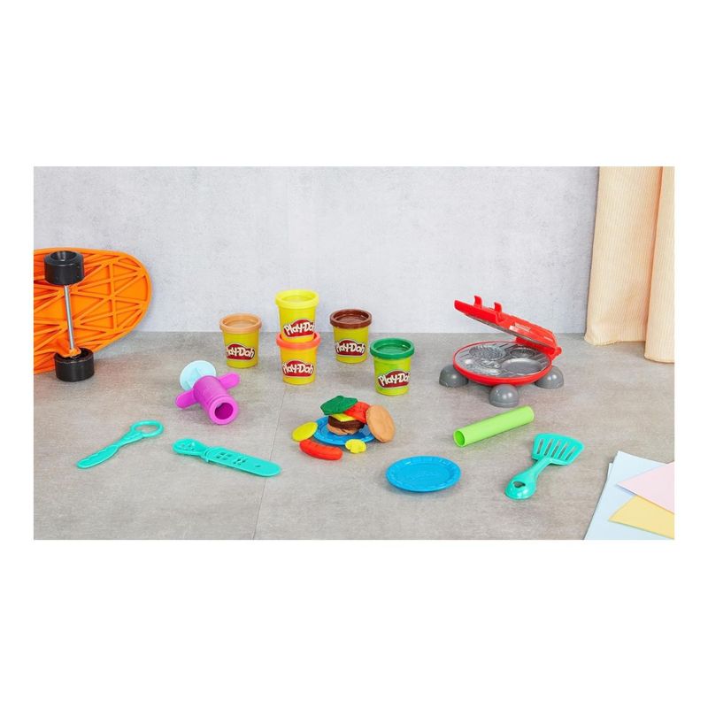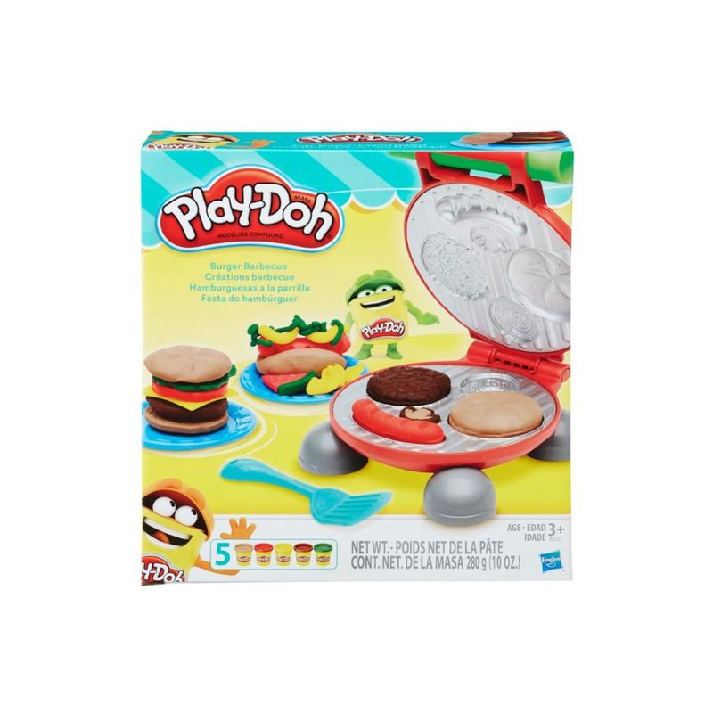 Conteúdo: 01 Conjunto Play doh Festa do Hamburguer Kitchen Creations (Burger Barbecue), com 5 potes de massinha play doh (280g no total) e acessórios ("grelha" de hambúrguer com moldes, 2 pratos, 1 extrusor, 4 acessórios).