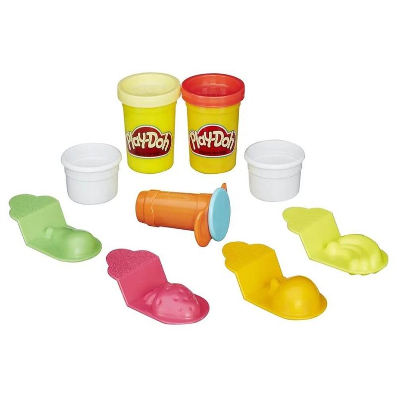 Um Prático Baldinho de Plástico, Incluindo 1 Ferramenta , 4 Moldes, 2 Copinhos e 2 Potes de Massinha Play-Doh. com Este Conjunto, Abrir Uma Sorveteria Play-Doh Ficou Fácil!
