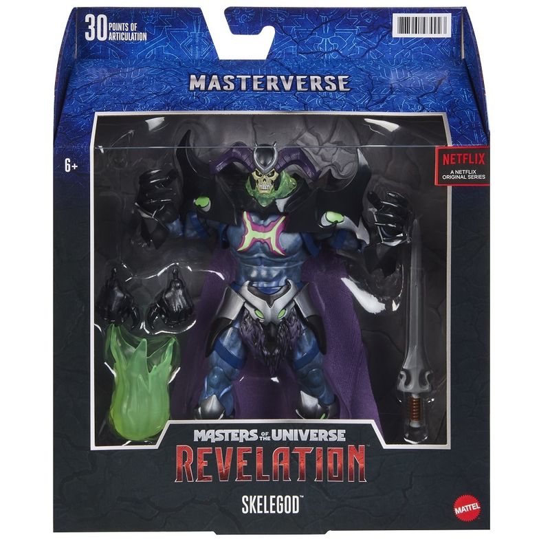 Esta figura do Masterverse Skeletor® foi esculpida por experts, atinge 9 polegadas de altura e possui pelo menos 30 pontos articuláveis para fazer as poses mais extremas.