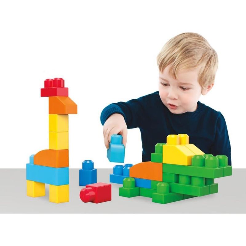 Construa e explore possibilidades de construção ilimitadas com a Deluxe Building Bag da Mega Bloks First Builders. Este grande conjunto é o sonho de todas as crianças e pais, com 150 blocos First Builders, incluindo novas formas, para incentivar a criatividade sem fim e o jogo aberto! Use os blocos coloridos clássicos para construir torres altas, castelos malucos, criaturas engraçadas ou qualquer outra coisa que seu filho possa sonhar. A Deluxe Building Bag é uma mochila sem PVC grande o suficiente para armazenar todos os blocos e muito mais! perguntas frequentes