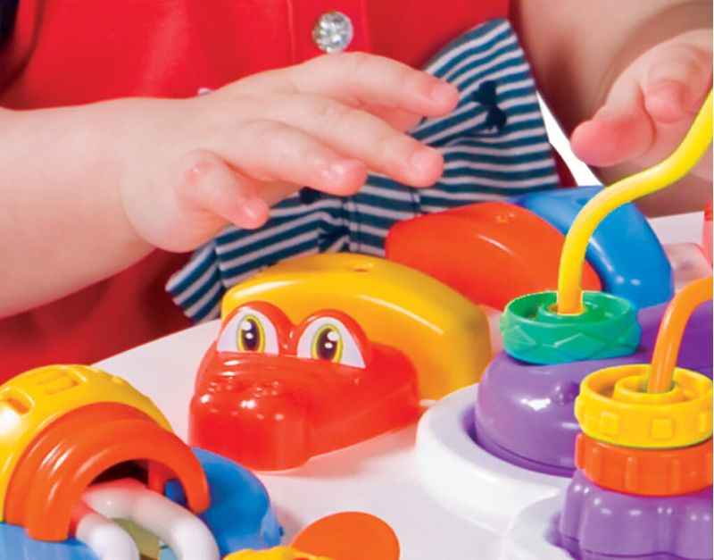 Melodia, engrenagens e peças giratórias, uma abelha deslizante, além de um ursinho removível, flor com música e esfera giratória! Atividades que despertam a atenção e o didatismo dos pequenos.