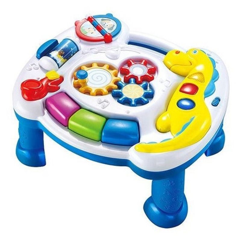Com a Mesa de Atividades vire a página do livrinho que será reproduzido o som do animal que aparece na imagem, ao mesmo tempo em que luzes coloridas piscam no dragãozinho. Aperte o botão localizado na lateral, que a imagem do cilindro muda para noturna ou diurna e um som correspondente é emitido enquanto luzes coloridas piscam no dragãozinho. O sax reproduz duas diferentes melodias enquanto luzes piscam no ritmo da música.