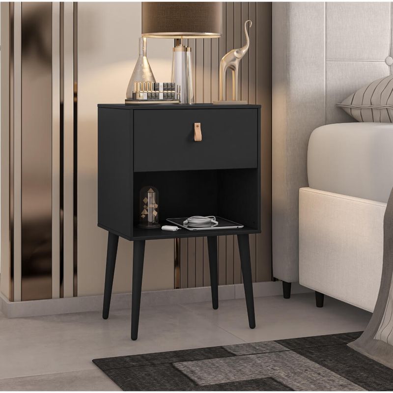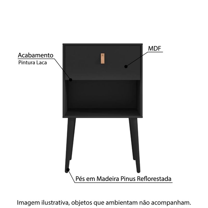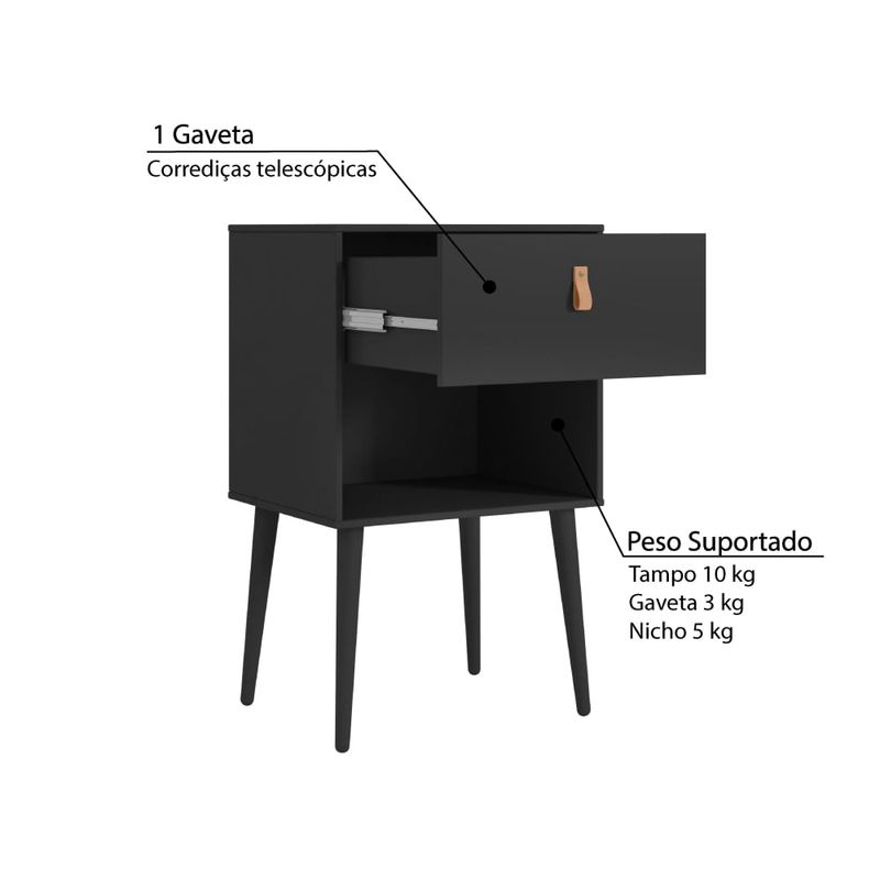 Mesa de Cabeceira Ivvie com 1 Gaveta e 1 Nicho - Preto