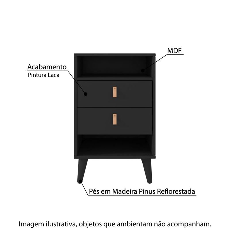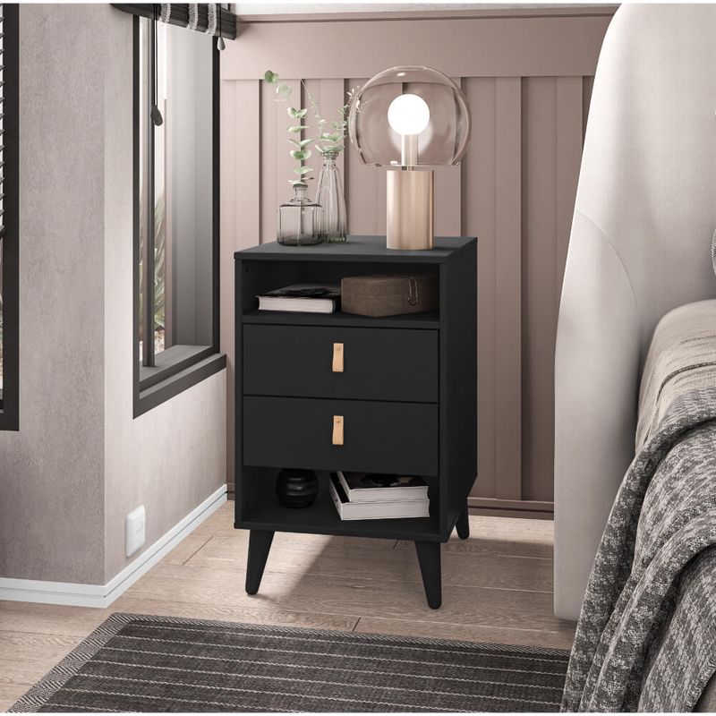 Mesa de Cabeceira Ivvie com 2 Gavetas e 2 Nichos - Preto