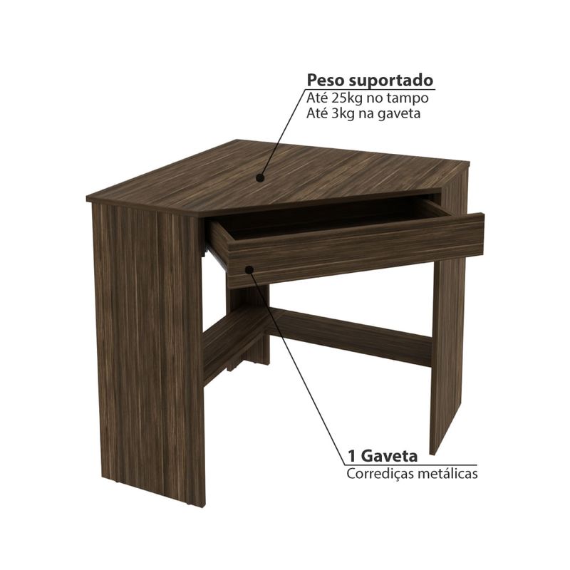 Mesa de Escritório em L com 1 Gaveta - Nogal