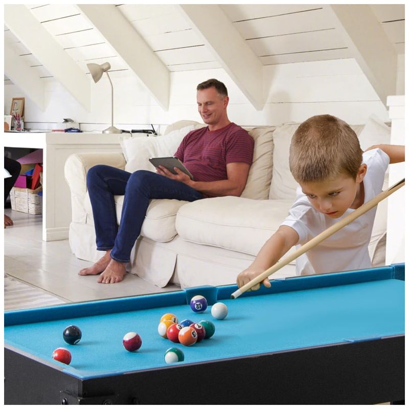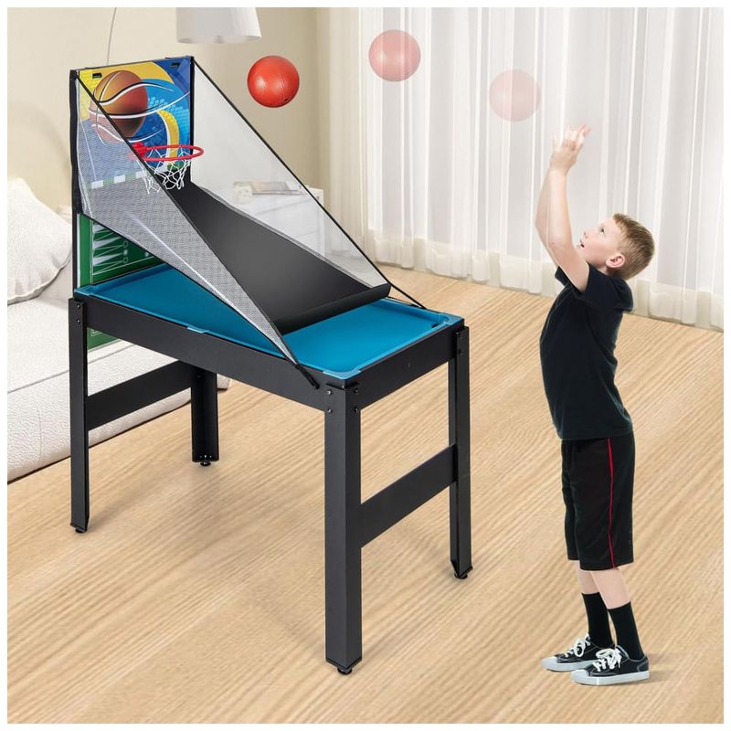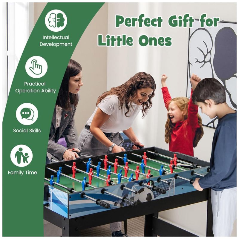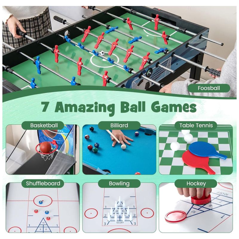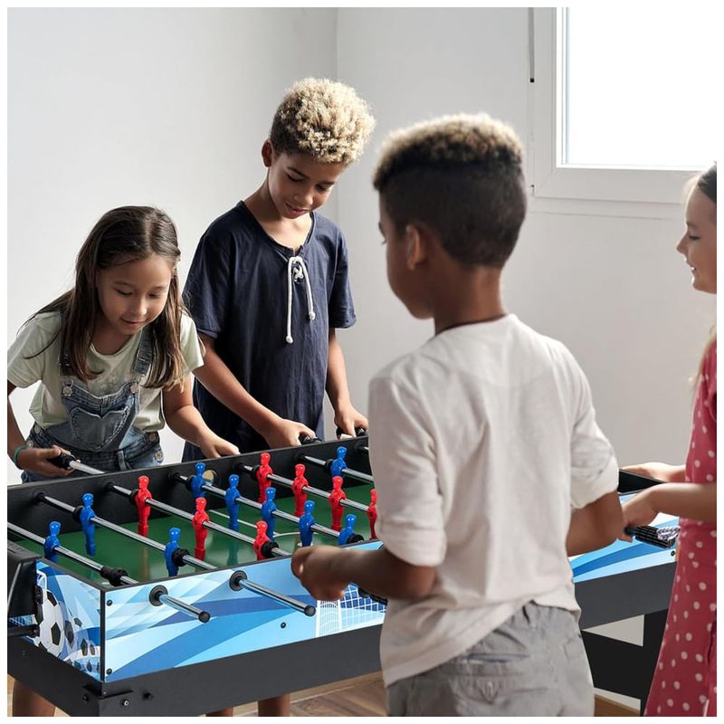 A mesa vem equipada com hastes resistentes e alças confortáveis para um manuseio fácil e preciso durante os jogos. Dispositivos de pontuação integrados em alguns jogos facilitam o acompanhamento dos pontos, tornando a experiência de jogo mais fluida e divertida.